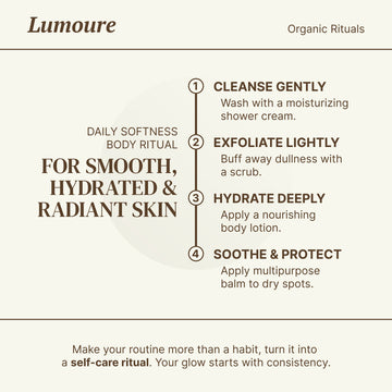 A nourishing everyday body care routine that cleanses, hydrates, and softens. With consistent use, skin feels silky, comfortable, and beautifully cared for.