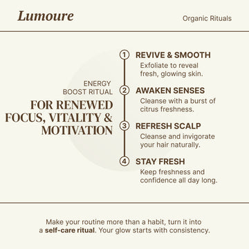 A complete energizing routine to awaken body and mind. Fresh citrus and invigorating botanicals work together to polish, cleanse, refresh, and protect. Leaving you radiant, uplifted, and ready to take on the day.