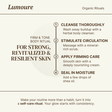 A body routine that supports tone and firmness while keeping skin smooth and hydrated. Ideal for those seeking a more energized look and feel.