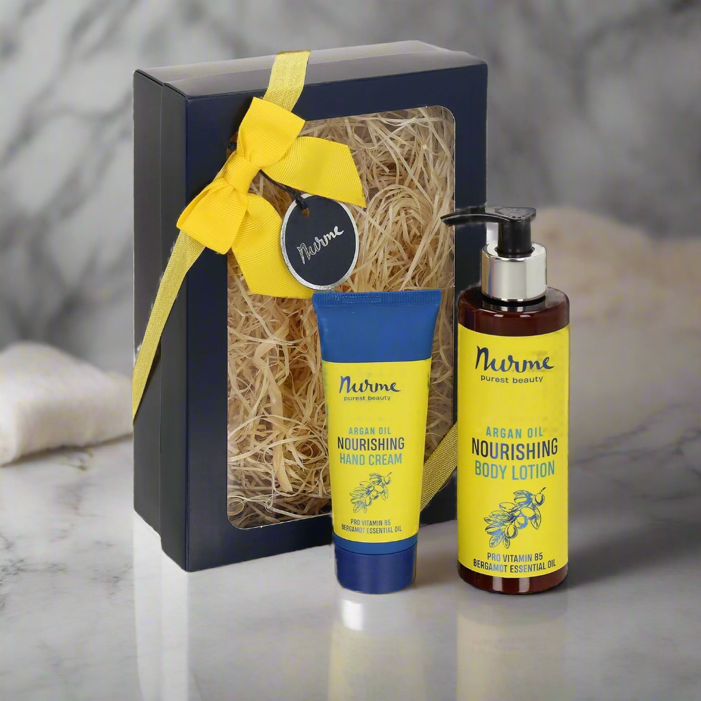 This uplifting natural gift set pairs a nutrient rich argan oil hand cream with a fast absorbing argan bergamot body milk, creating a refreshing daily ritual for silky, hydrated skin. The lightweight textures soften dryness without greasiness, while the bright citrus aroma energises your senses. With packaging made from 70 percent recycled plastic, it is a thoughtful treat for yourself or someone you care about.